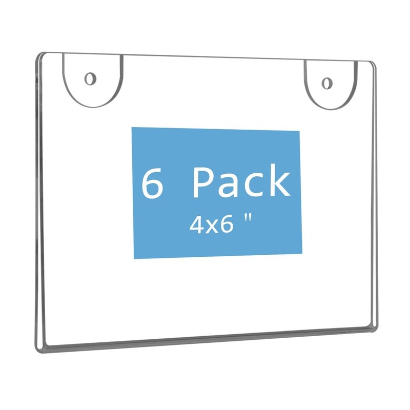 ADDED THICKNESS 4*6'' inch acrylic photo frame.It can hold 4*6'' picture or smaller one and a smaller picture will leave a border for a floating effect MULTI-PURPOSE Two (10+10mm) blocks hold the picture together,it is thick enough to stay in both horizontal or portrait positions steady, 4 pairs of powerful magnets to confirm each corner attached exactly,make it easy to update with new photograph MULTI-FUNCTIONAL You can install the wall mounted sign holder by using the Included Screws and Anchors,or hang it through the pre-drilled holes by using a string,or just stick it by using our Free Double Sided Adhesive Strips on wall without drilling.